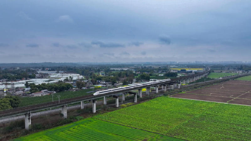 一辆列车运行在成都与眉山间(2026年3月3日摄)。新华社发(韩旭刚摄)