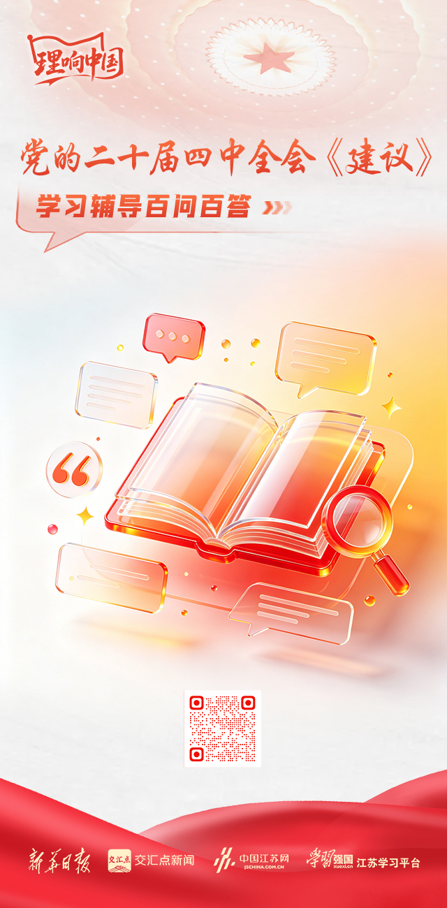 为帮助广大党员、干部、群众深入学习贯彻党的二十届四中全会精神,中国江苏网推出特别策划“党的二十届四中全会《建议》学习辅导百问百答”融媒产品,与您一起,在学思践悟中推动党的创新理论入脑入心。