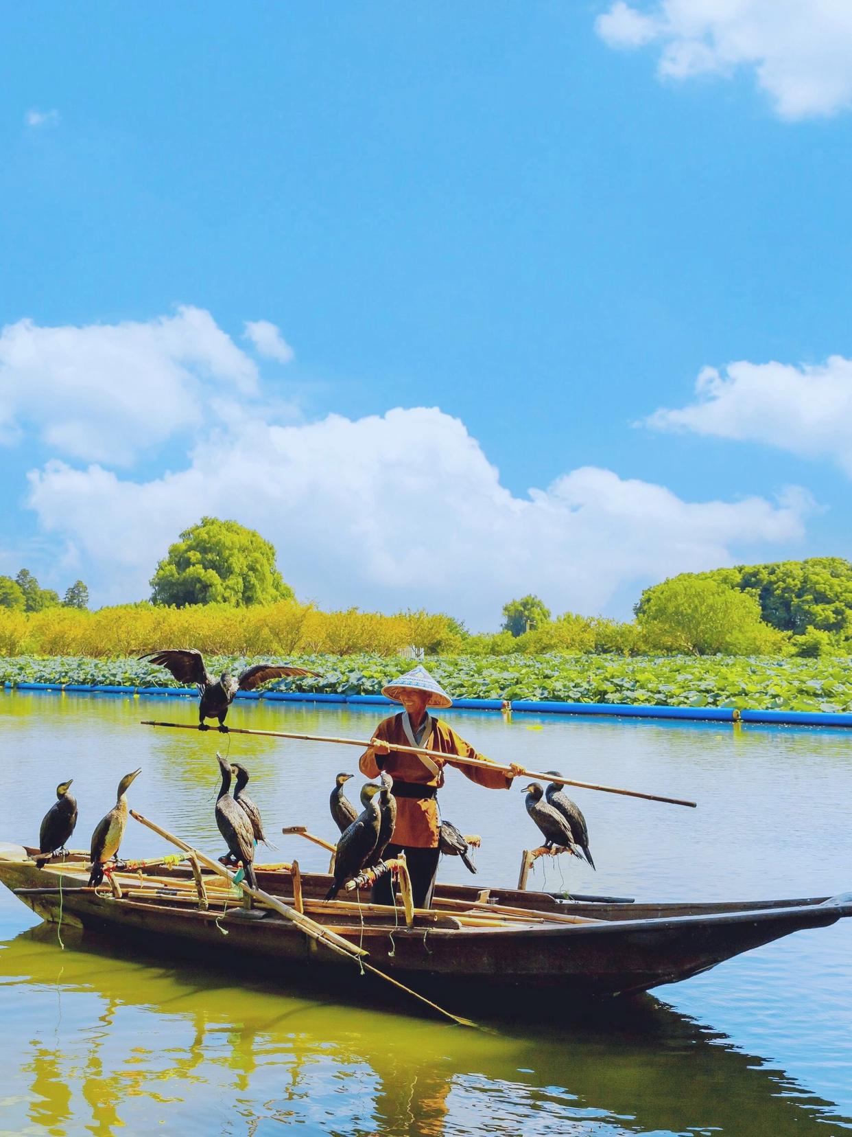 李中水上森林景区里,水上轻功“独竹漂”、鸬鹚捕鱼、水上巡游等特色活动在水边林下接连上演。
