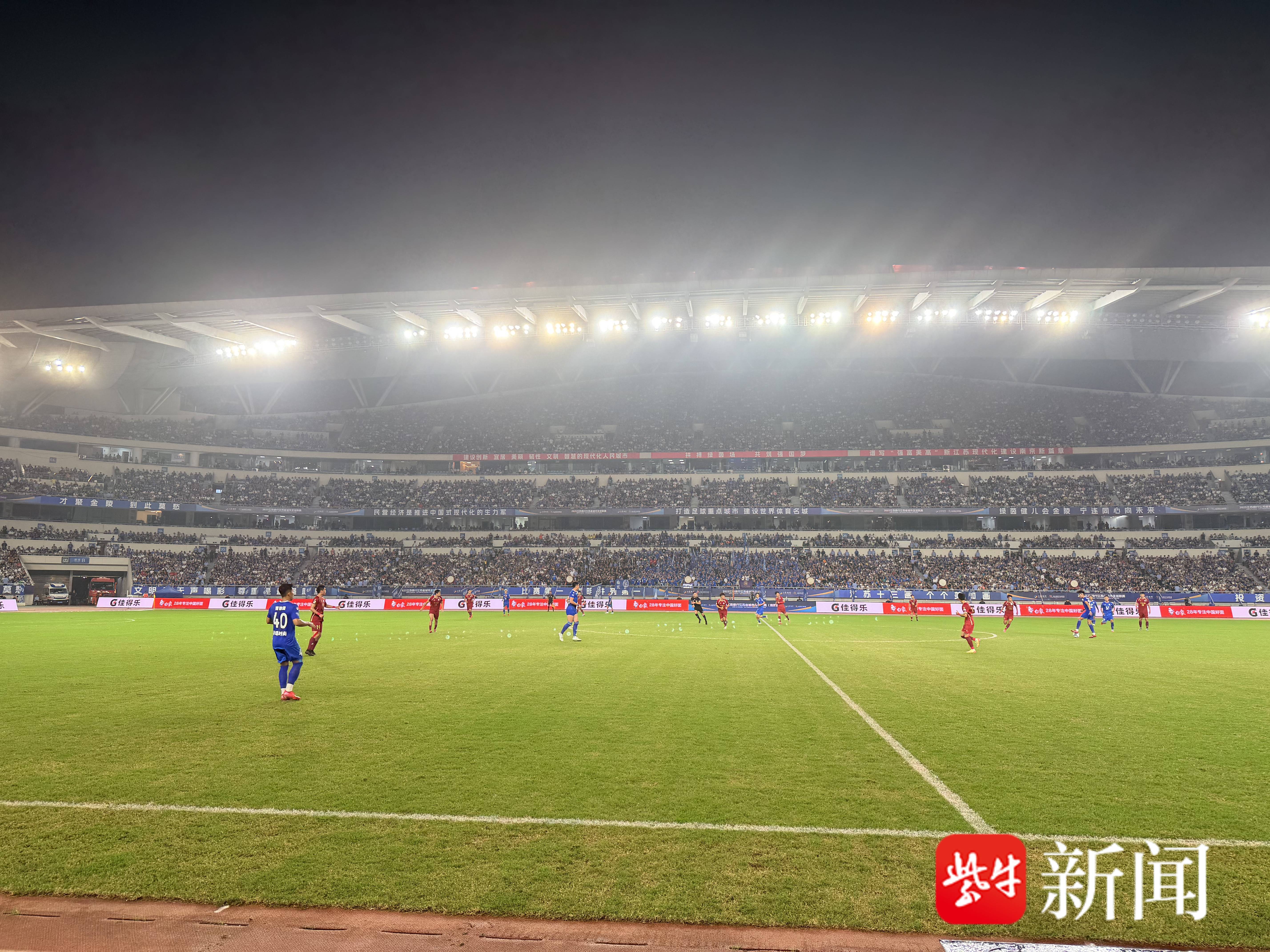 10月4日晚,苏超淘汰赛第一场比赛在南京奥体中心开打,对阵的双方是南京队和连云港队。本场比赛对于双方来说都是孤注一掷的较量,因为单轮淘汰赛的偶然因素非常大,况且比赛90分钟打平将直接进入点球大战,所以纵然是常规赛排名第2和第7的球队较量,场上的差距也远不如排名差距来的明显。果然,本场比赛南京队先进一球,但第96分钟连云港队获得点球并罚进,双方进入点球大战,南京队最终以总比分5:3取得艰难胜利。本场比赛现场来了61355名观众,又创了苏超上座率新高。