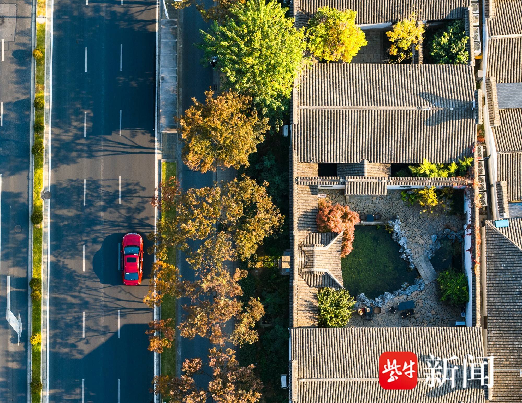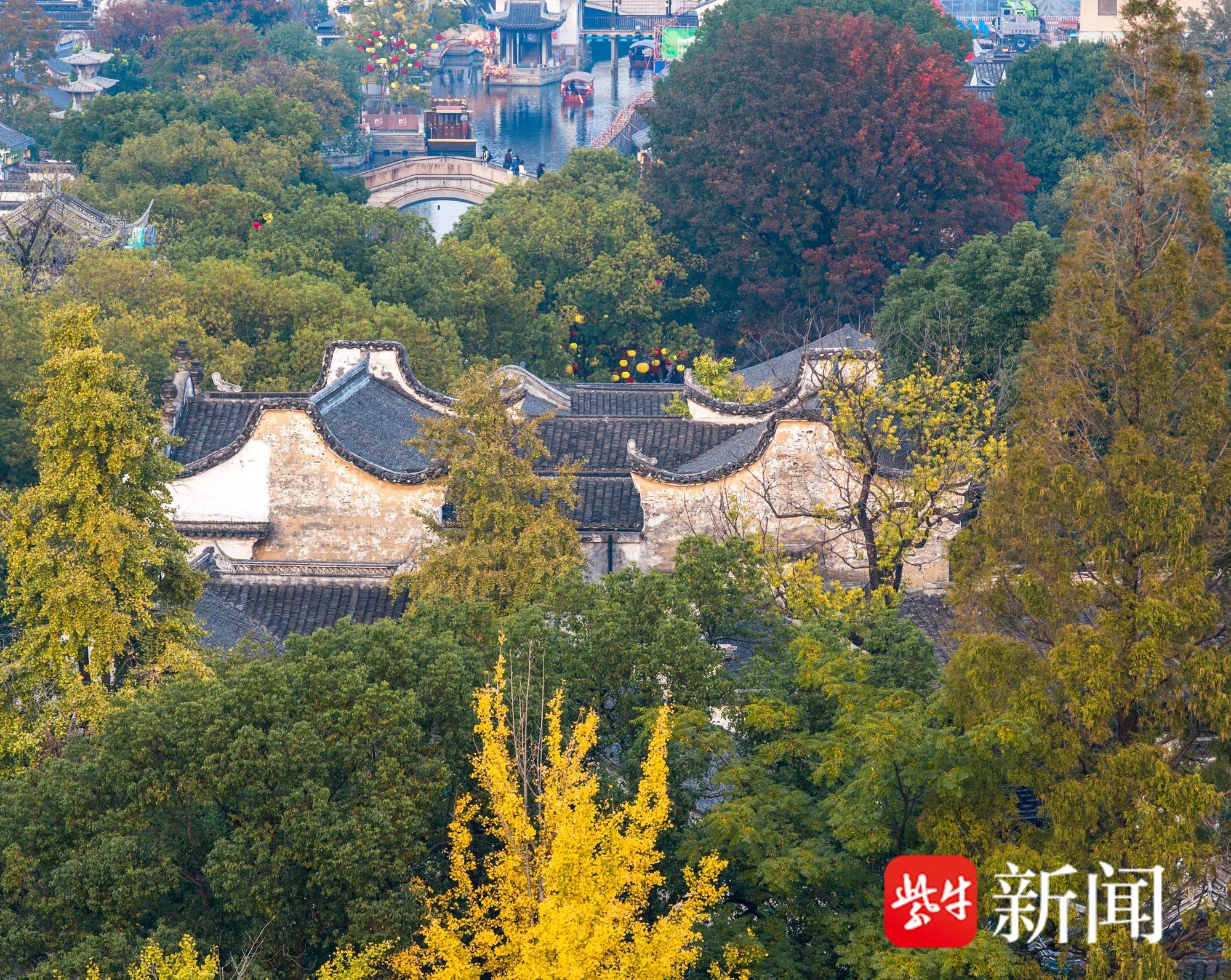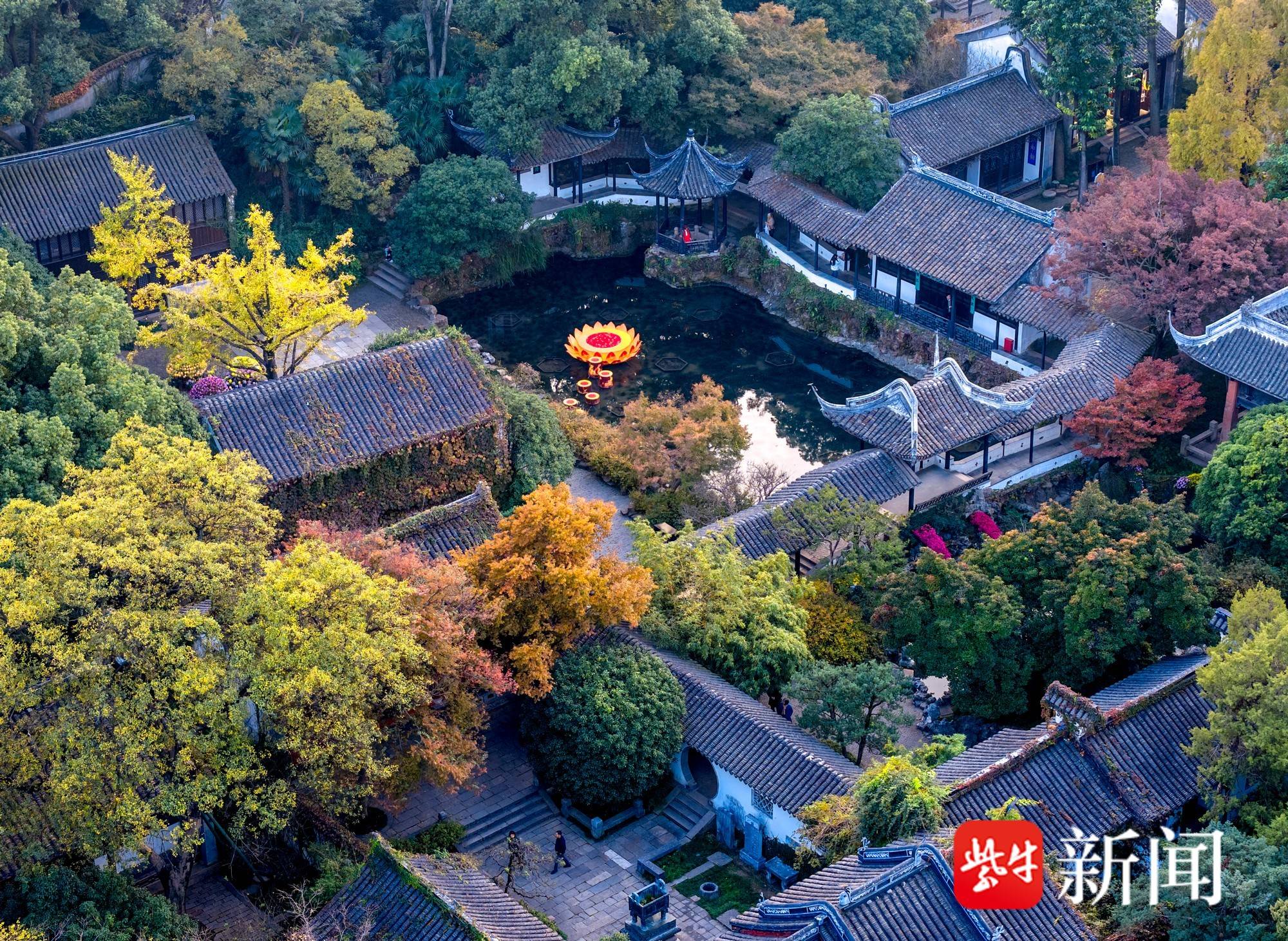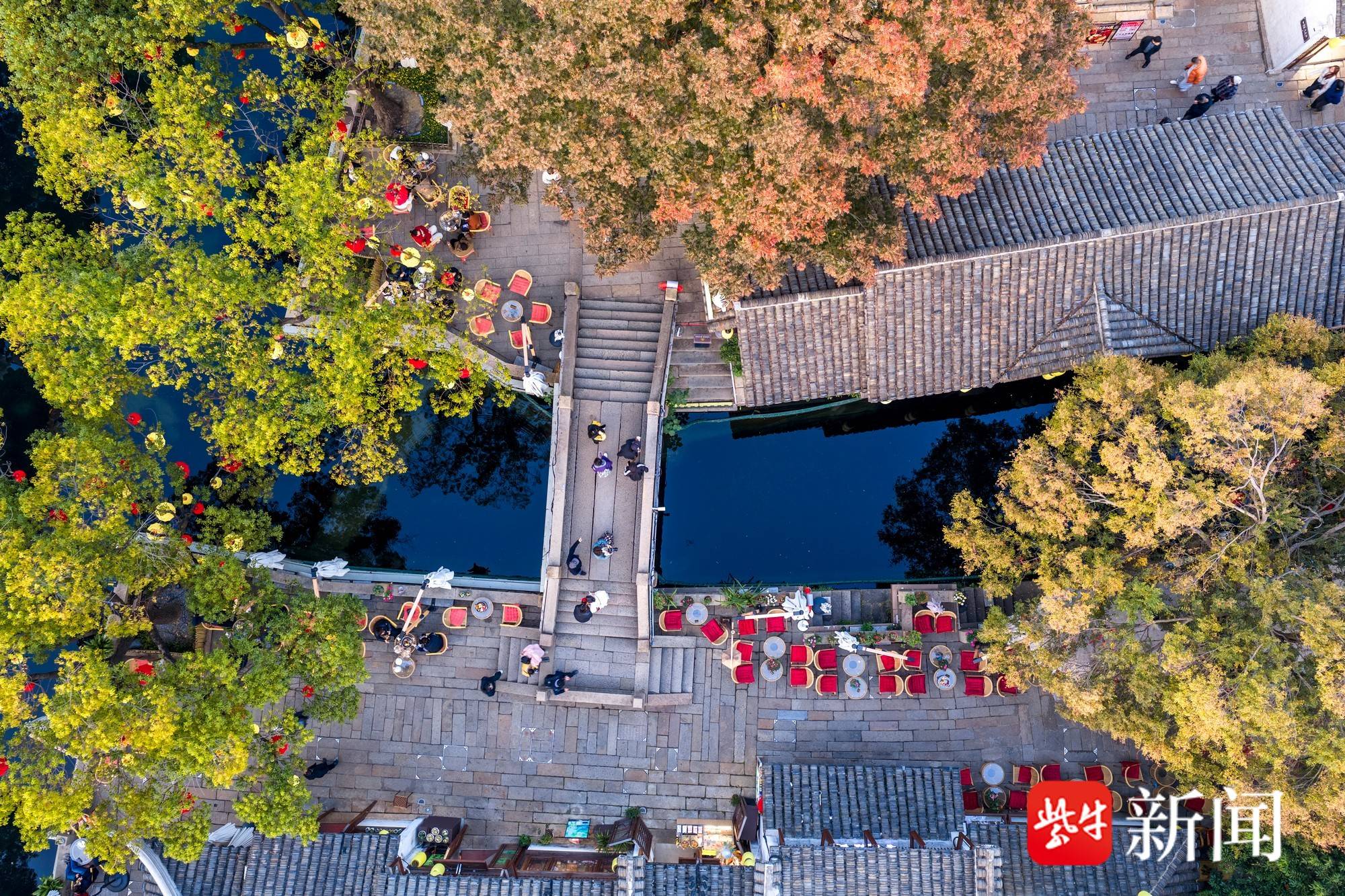 2025年11月21日,航拍镜头下,无锡惠山映月里的秋光正徐徐铺展。黛瓦飞檐间,乌桕叶渐染绯红,鸡爪槭舒展金箔般的叶片,与宝善河的粼粼波光相映,将今年春晚分会场的风情晕染成流动的江南水墨。快门轻按,这份“慢慢的氛围感”便定格在镜头中。
