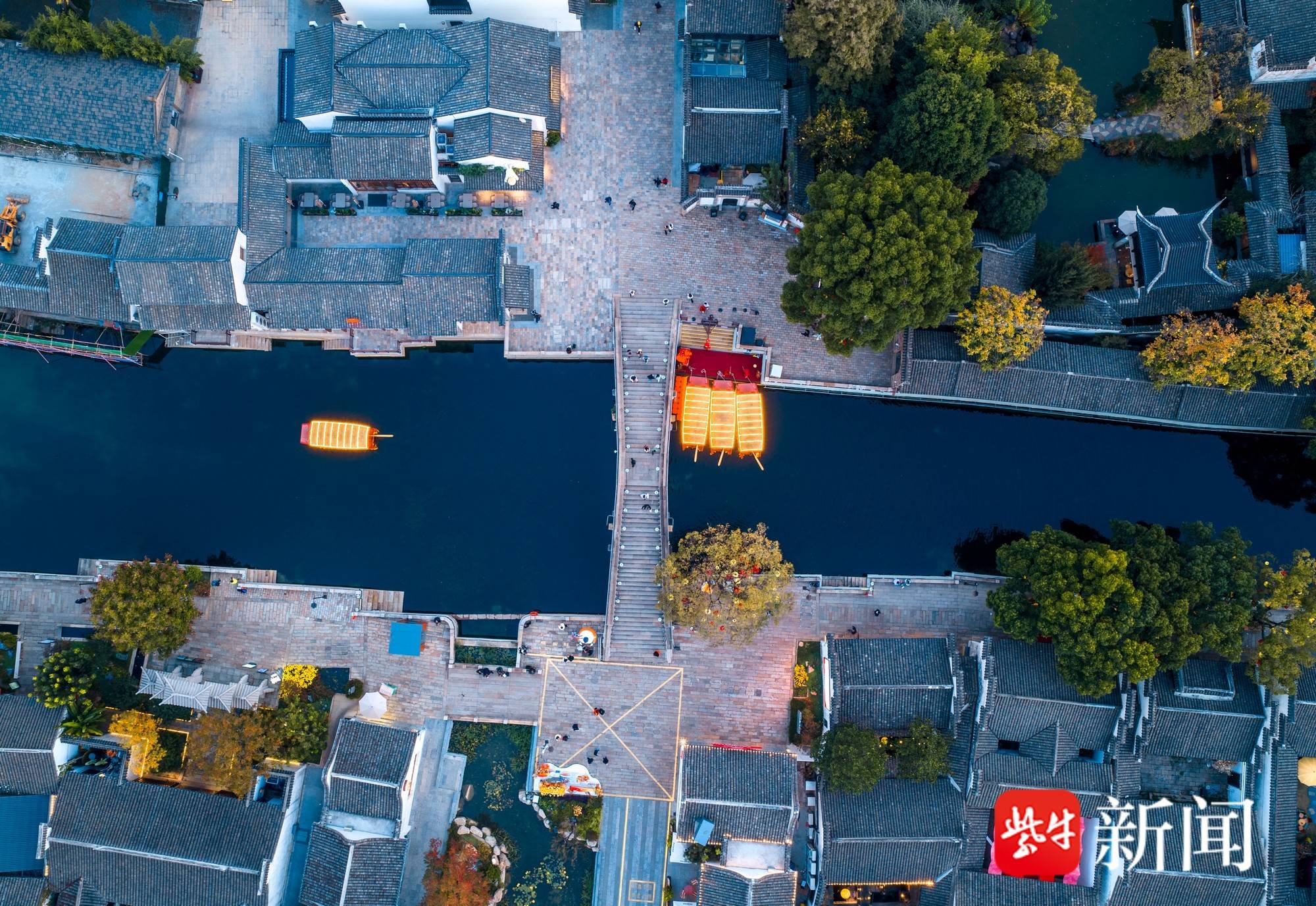 作为今年春晚青睐的取景地,映月里的古意与新意在此刻交融得恰到好处。空中俯瞰,四百年历史的宝善桥拱起优美弧线,五彩秋林与白墙黑瓦裁入波心,恍若春晚荧幕上的水墨帧景重现。摇橹船轻轻划过,与岸边的咖啡香、黑胶唱片旋律,共谱成新旧江南的交响曲。
