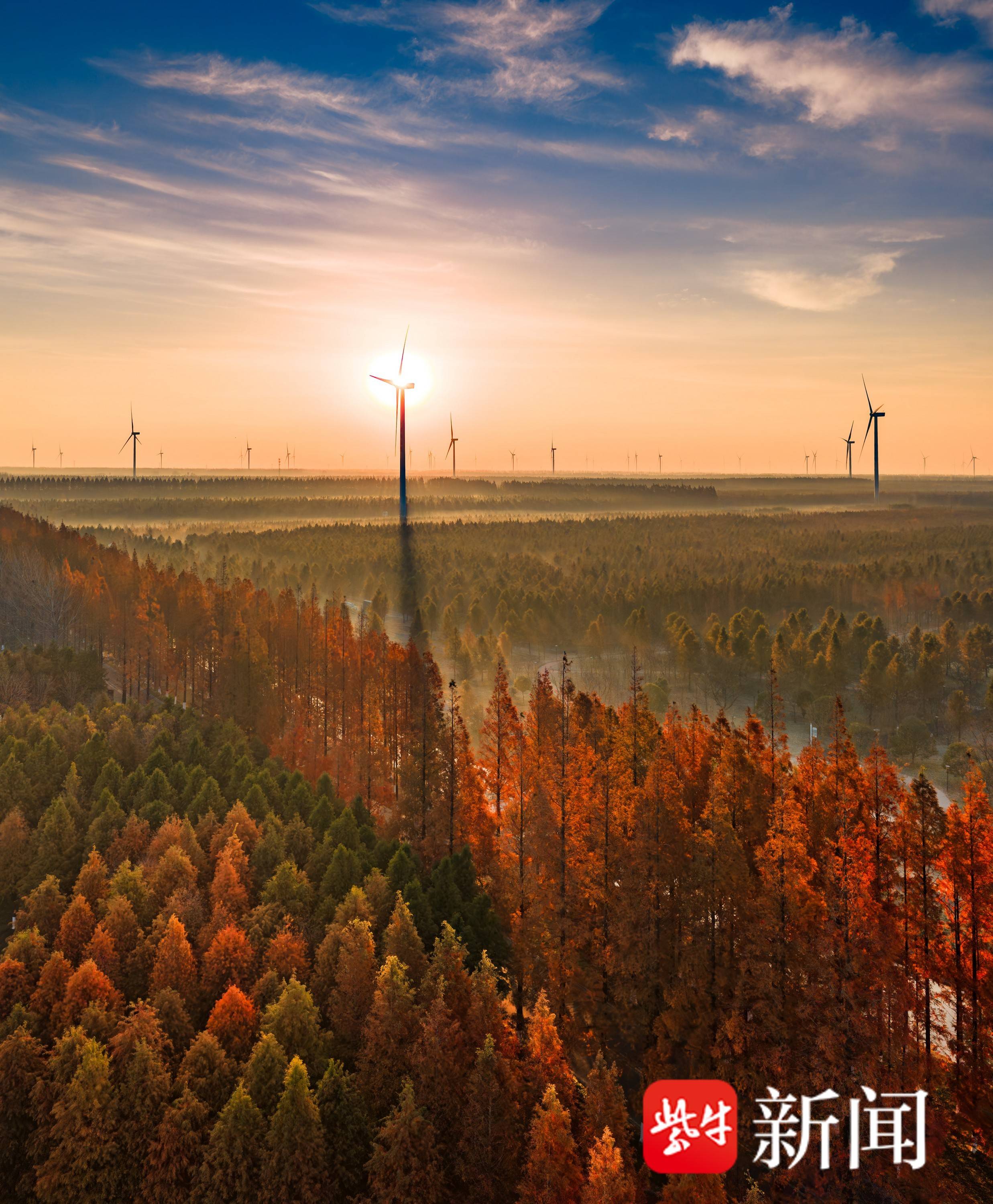 航拍东台黄海森林公园:初冬调色盘绘就最美生态画卷