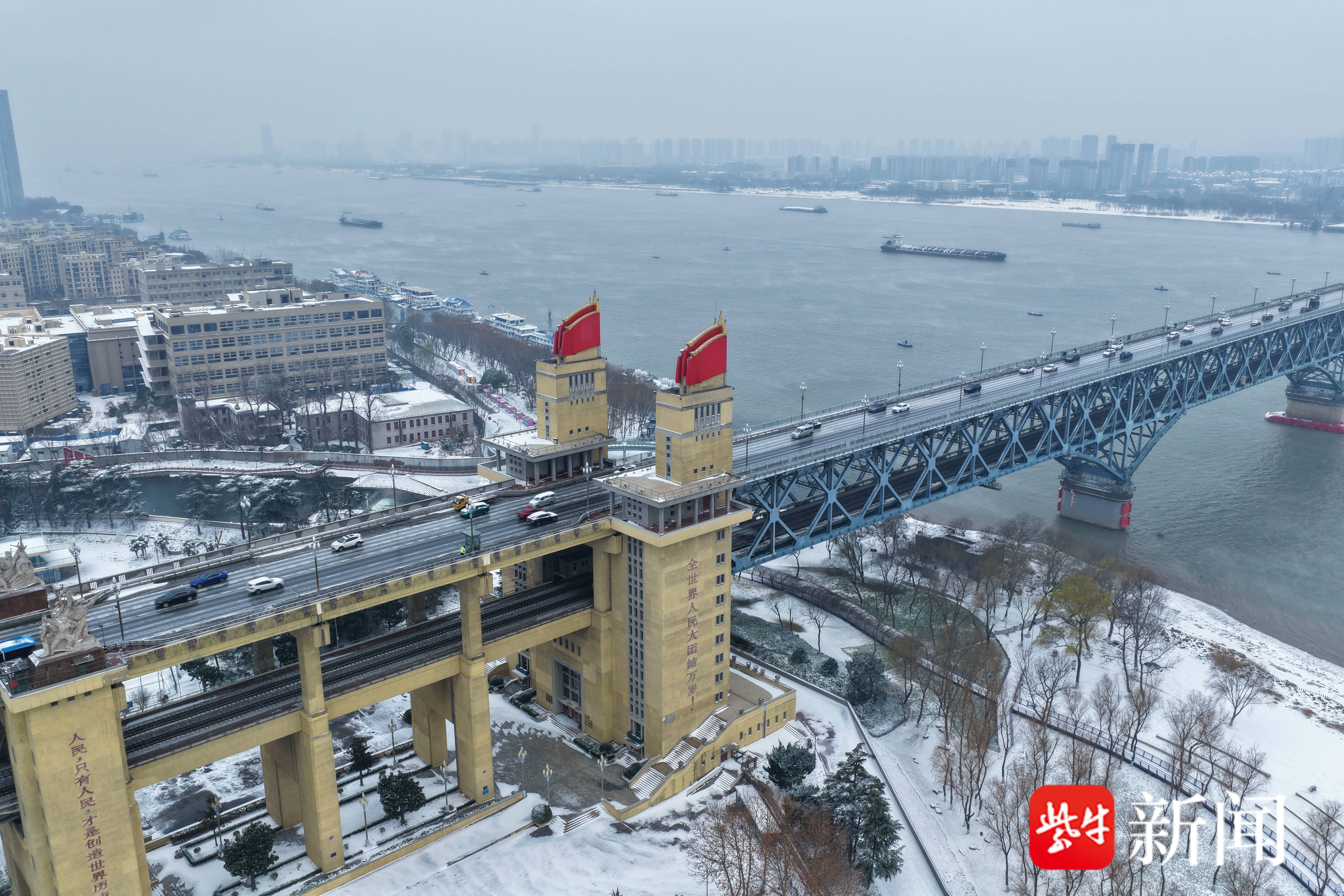 这场降雪不仅装扮了长江大桥,更让整座金陵城浸满冬日风情。沿江一带的景致与长江大桥遥相呼应,白雪覆盖的岸线、披雪的树木与银装大桥构成连贯的雪景画卷,吸引着市民奔赴各处赏雪打卡。而长江大桥作为城市地标,凭借其独特的建筑风骨与雪后的绝美姿态,成为众多市民心中的赏雪首选地,定格下无数温馨美好的瞬间。