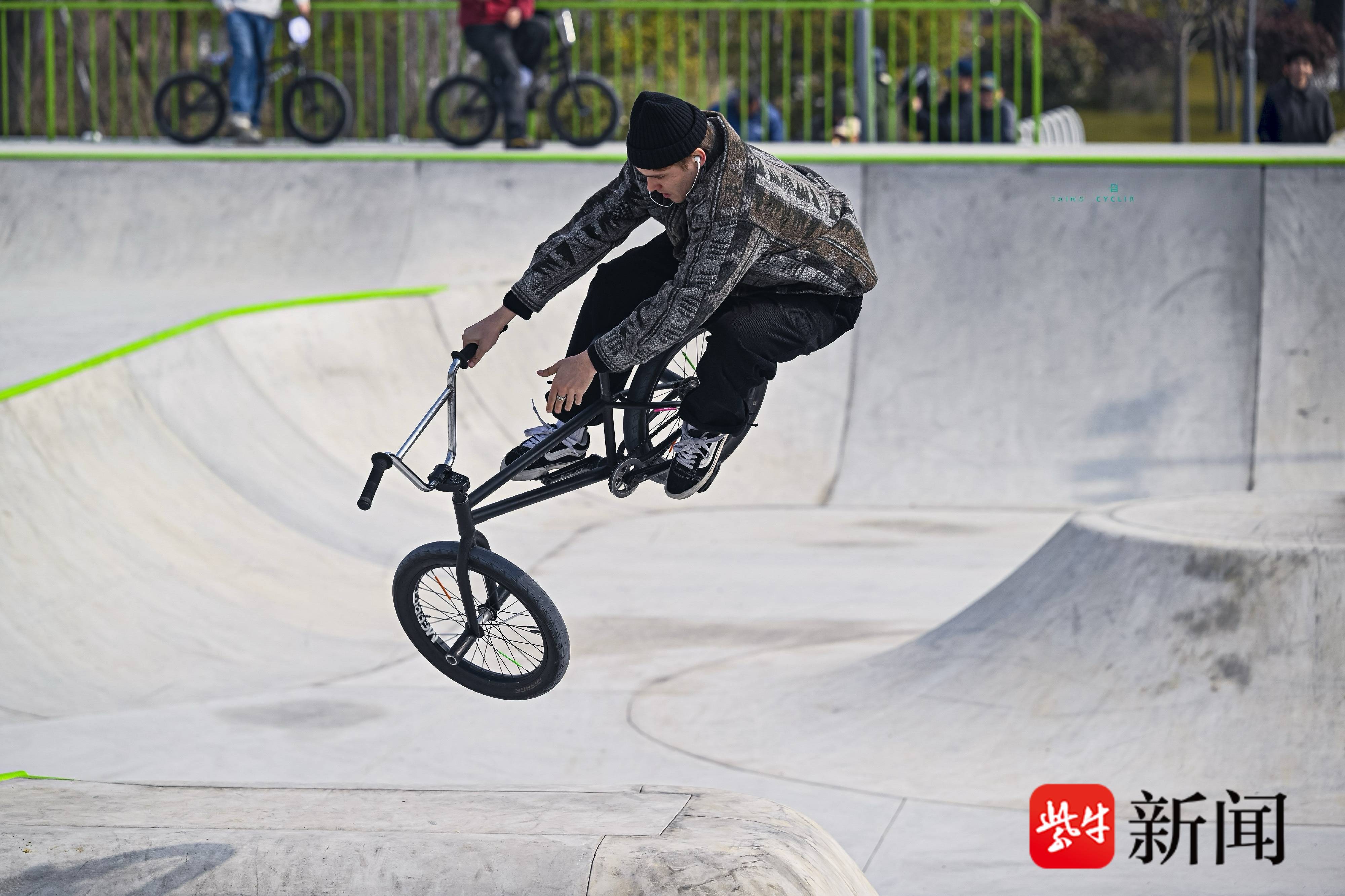 在北京骑了七年车的福建籍参赛者张鸿轩,这次特意跨越千里赶来参赛。“完全是被网上的场地照片种草的!”他指着“大炮台”“街市地形”和标准碗池表示,“这些设施太专业了,不管是想正经比赛,还是随便骑骑散心,都能找到合适的区域,对骑手比较友好。”