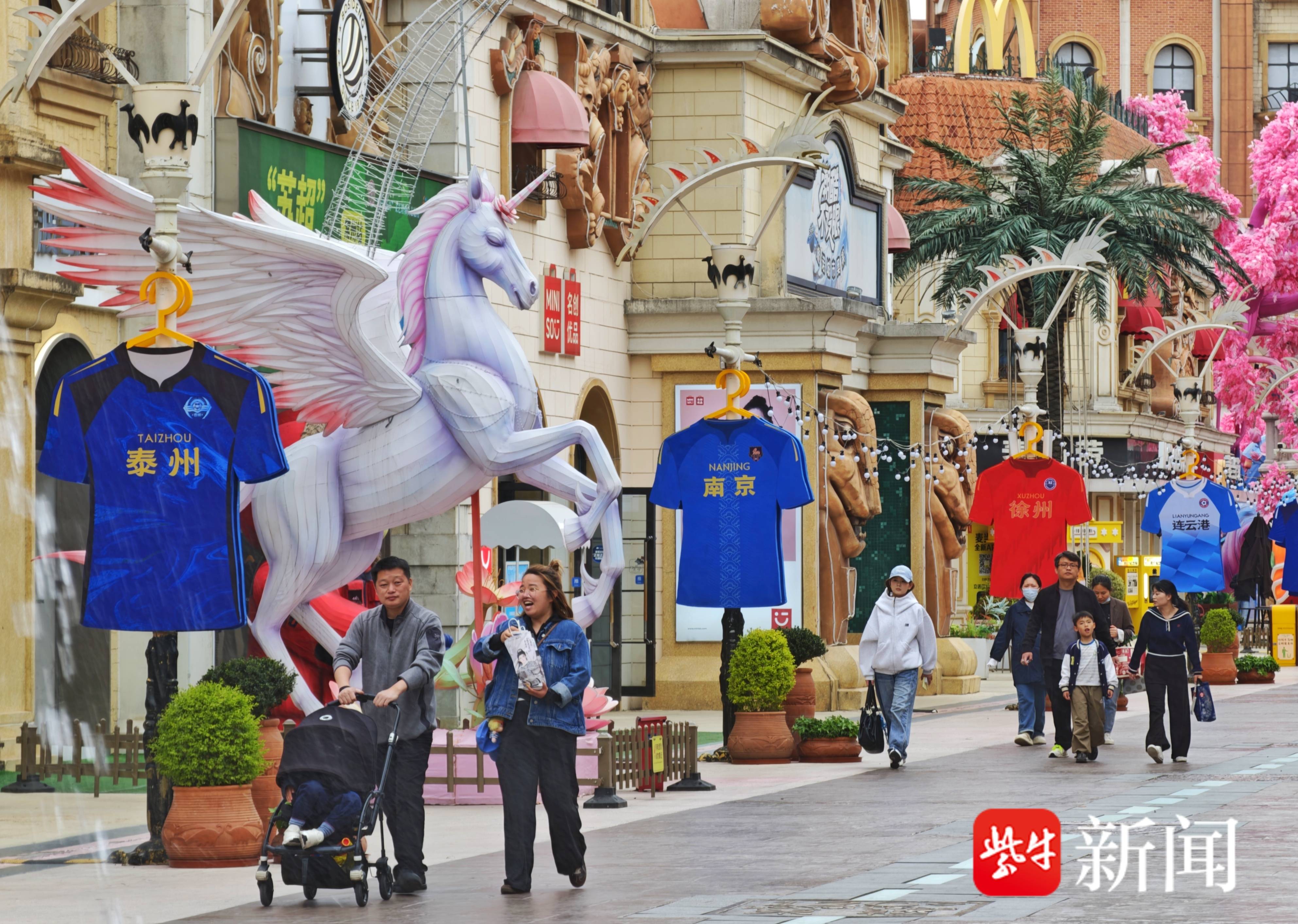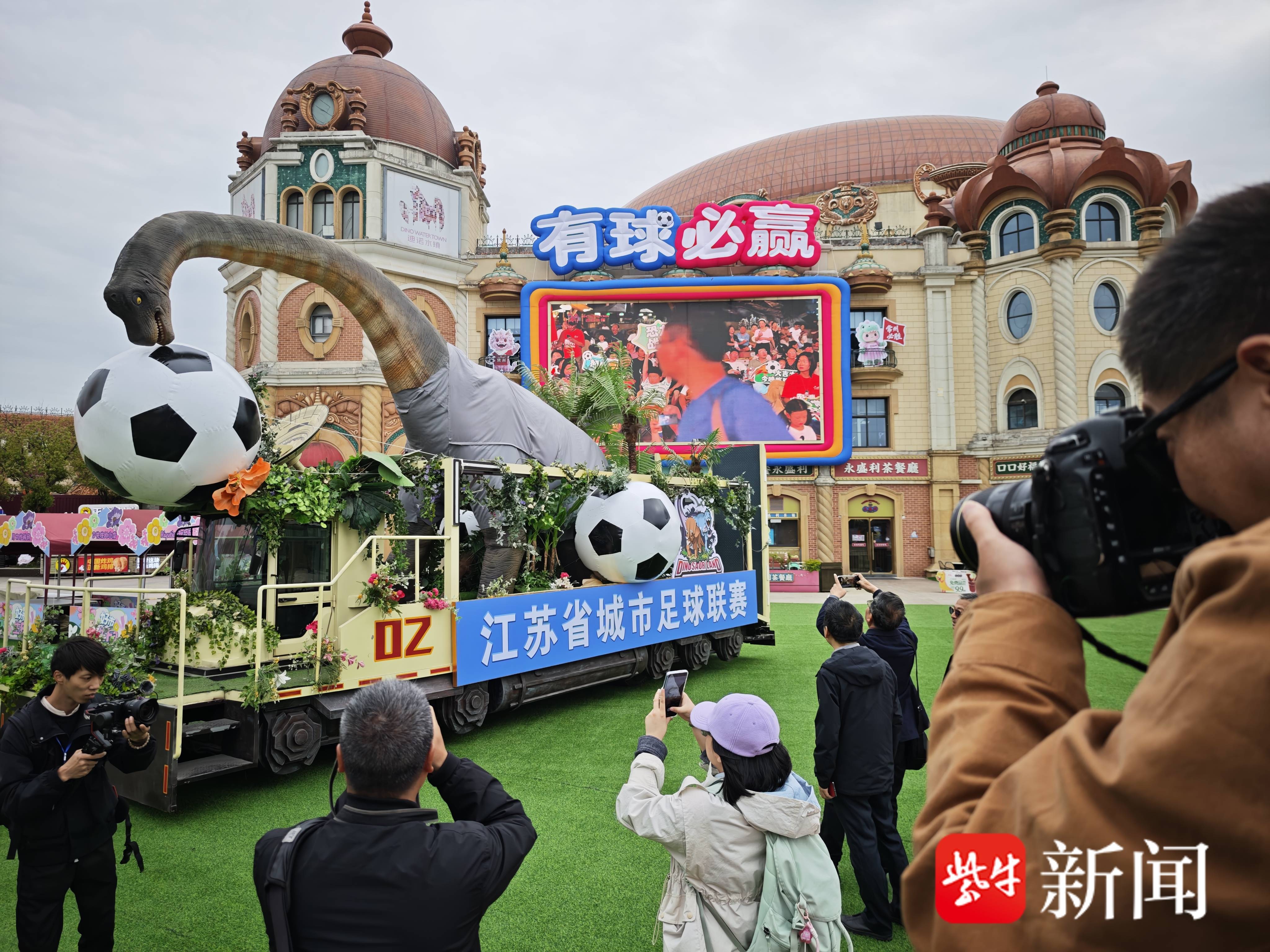 本届赛事揭幕战落户常州,当地赛场布置、服务保障、氛围营造均已就绪,全城足球热度持续高涨。为呼应赛事、丰富观赛体验,江苏多地依托文旅载体打造足球主题场景,常州迪诺水镇足球主题街区便是全省预热亮点之一。