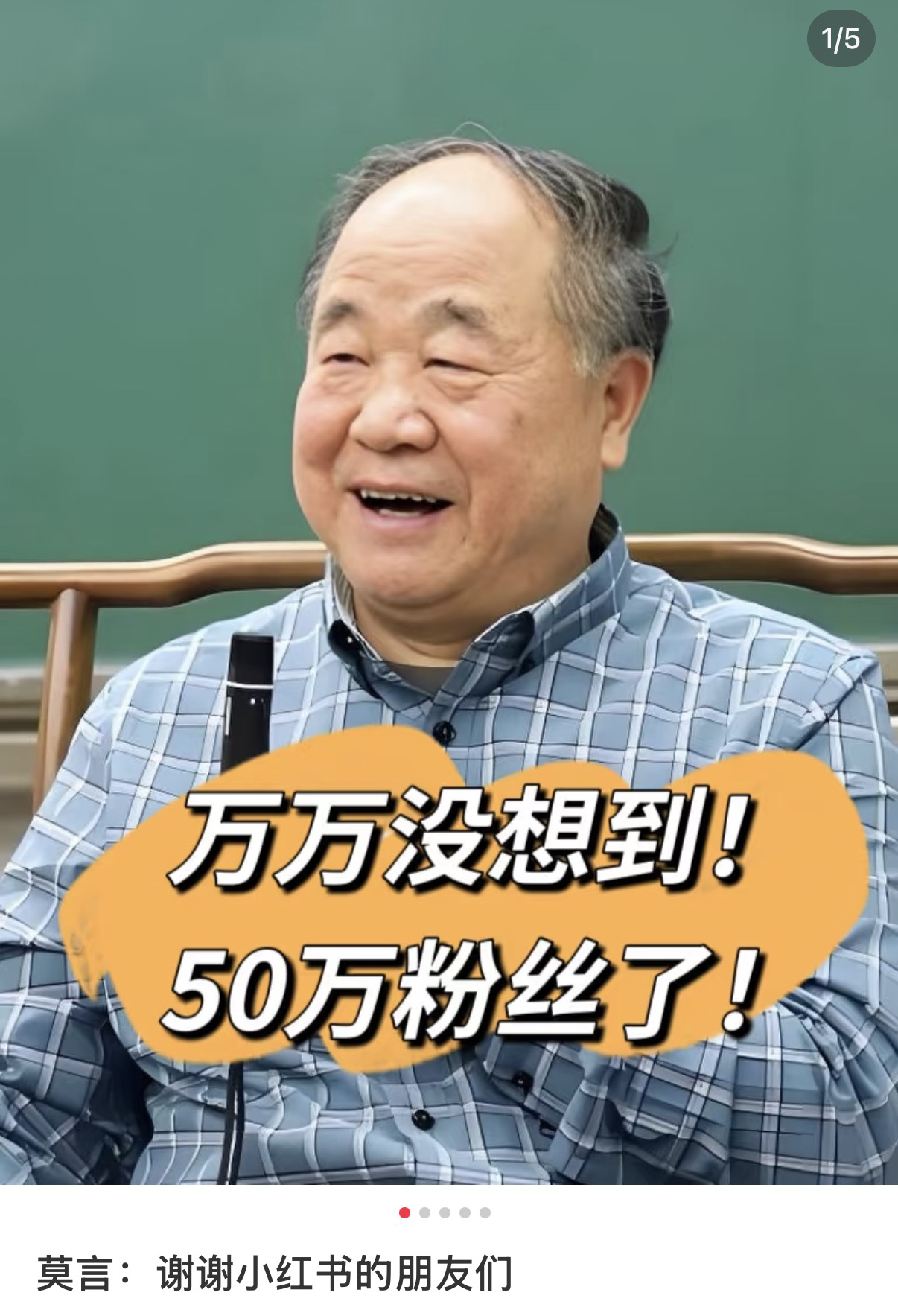 2025年11月11日,诺贝尔文学奖得主莫言正式入驻小红书平台,首条视频一经发布便引爆网络。截至12日下午,其账号粉丝量已突破50.6万,单条视频收获50万点赞,评论区网友花式玩梗、作家幽默接梗的互动场景,成为全网热议的欢乐焦点。