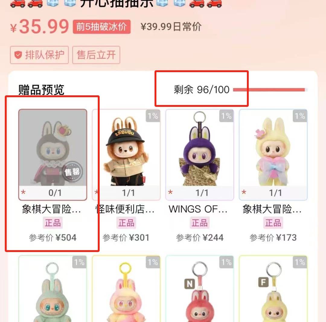 为了吸引购买,部分“车主”会为福袋中的前五发设置优惠于原价的“破冰价”。若福袋中价值最高的盲盒在前几发就被买家抽中,便被称为“爆头”。蓝女士说,她的朋友就曾花30多元抽中价值500多元的产品,是那个福袋中最大的奖。不过,一旦出现“爆头”的情况,后面的买家大多不愿再购买,“车主”就很可能会面临亏损。