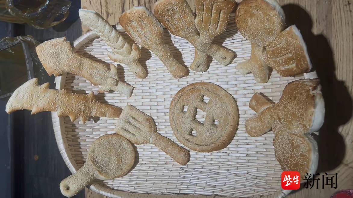 他想到之前流行的游戏,就在网上找了图片,把烧饼做成了游戏里的各种装备、武器的形状。想着这样烧饼能够受到年轻人的喜欢,也更容易卖出去。