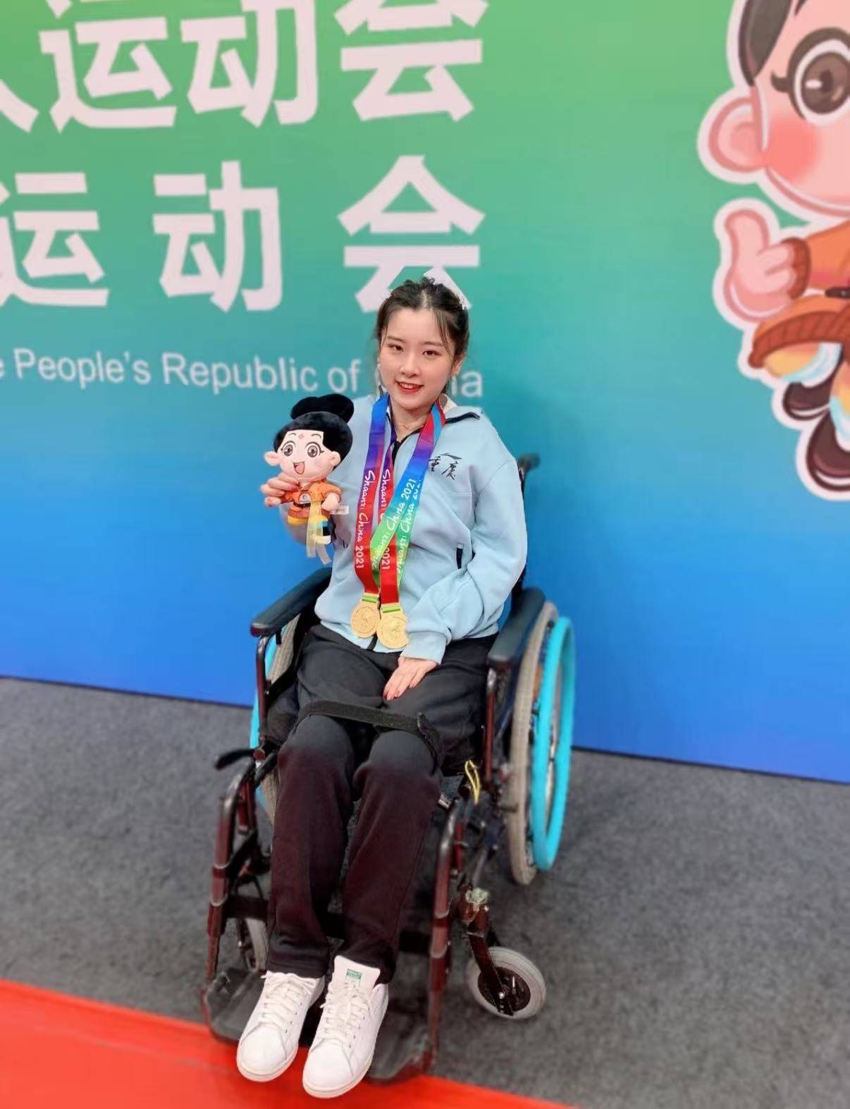 她的坚持与乐观打动了无数网友,她的社交平台成为了“解忧杂货铺”,无数网友在她的视频下留言,分享自己的经历,汲取前行的力量。乒乓球则成为了她人生中的另一束光。2019年参加脊髓损伤生活重建训练营时,她与同伴一起学习打乒乓球,被教练选中跟队训练。作为残疾程度最严重的TT1级选手,她只能用弹力带将球拍固定在手腕上,靠大臂力量带动挥拍。刻苦的训练换来了丰硕成果:2021年,她夺得全国第11届残运会乒乓球TT1女子团体和女子双打金牌;2024年,又在成都第10届残疾人运动会上斩获单打金牌。目前她也在备战今年的全国残运会。