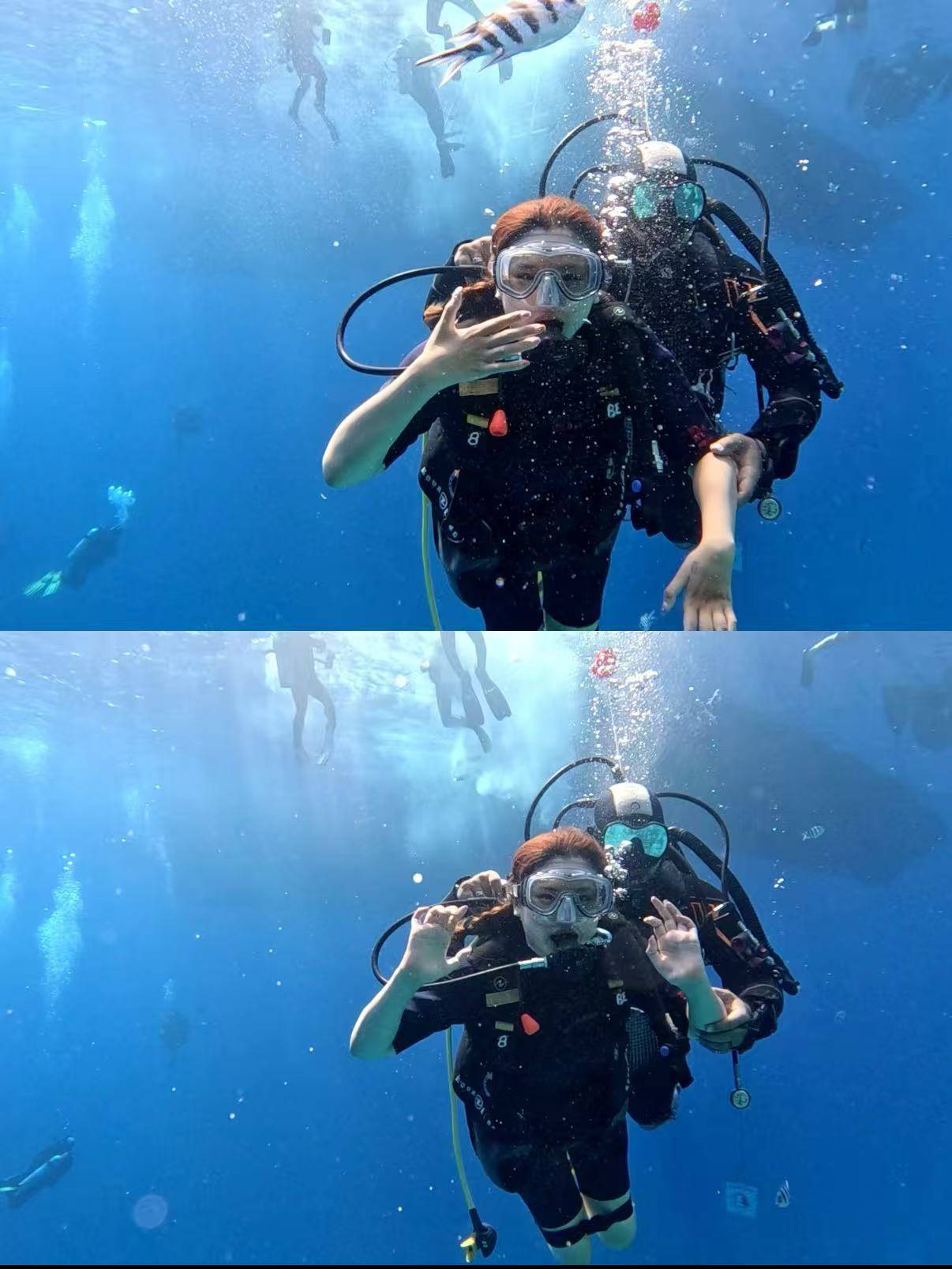 潜水当天,孙晨璐在教练的全程陪同下开启了深海之旅。与普通潜水者不同,她无需自己游动,教练会拎着她身后的潜水服,带着她在水中前行。她告诉记者:“刚开始比较紧张,潜完以后觉得特别开心。”回忆起水下的经历,她依旧难掩激动。这片曾留下美好回忆的红海,如今再次见证了她的勇敢——在15米的深海中,她摆脱了轮椅的束缚,像鱼儿一样在水中漂浮,眼前的珊瑚与游鱼,成为了对她勇气最好的嘉奖。