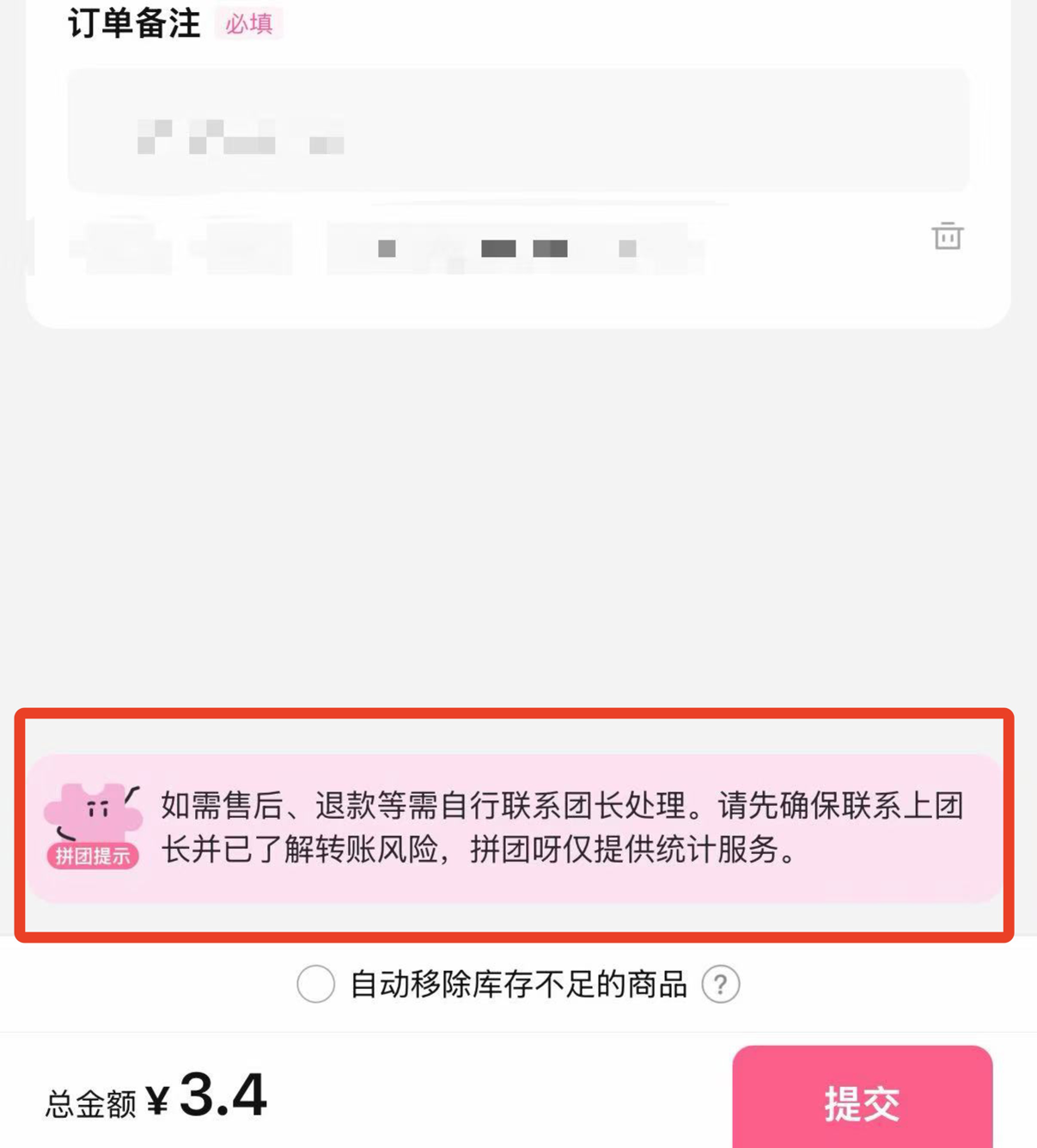 “拼团呀”相关提示