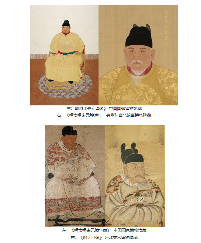 记者查询资料了解到,中国国家博物馆和台北故宫博物院都保存着朱元璋像,但传世的朱元璋肖像一直存在两种截然不同的版本。故宫博物院发布的《明清肖像画的传移摹写与鉴定故宫研究院学术讲坛第七十六讲》中提到,在清人胡敬的《南薰殿图像考》中,记载的朱元璋画像就有十二帧之多。这些画像大致可分为两类。一类为天庭饱满,俊朗和煦,如台北故宫博物院所藏明太祖全身坐像及晚年半身像等,均属此类,称为正形像;一类为下颚凸出,脸颊拉长,面颊布满黑痣,称为异形像。