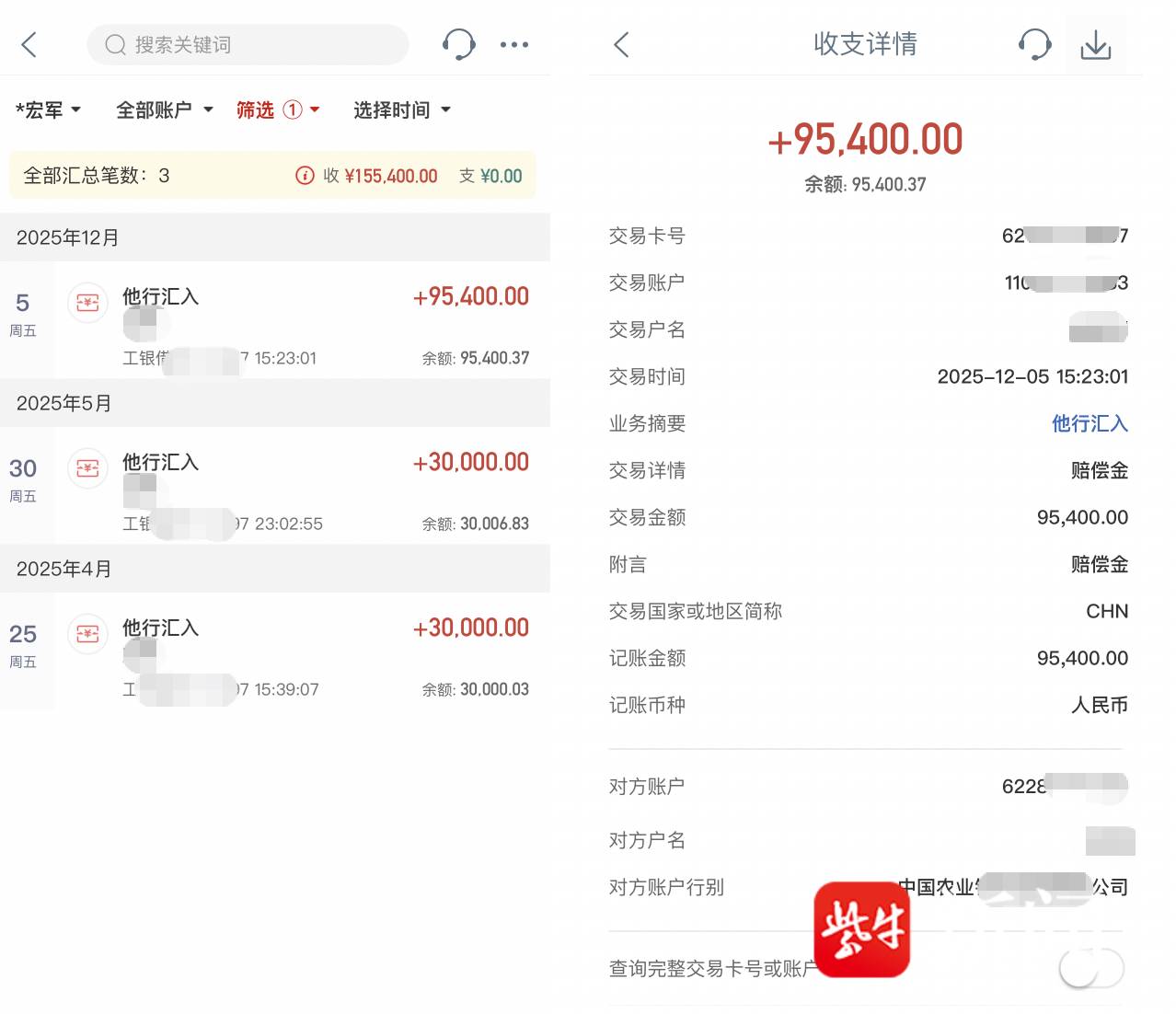 小张表示,12月5日,签完协议的第三天,公司便要求他前往保险公司,保险公司现场核定了保险理赔总额为161,600元。确认金额后,公司老板将剩余95,400元打给小张。小张表示,这时他共拿到155400元赔偿金。“我当时为了能拿到这部分钱,只能配合公司。”小张说,但拿到钱后,他又觉得很憋屈,想要另行申请工伤赔偿,于是再次向保险公司申请撤销了理赔流程。目前,这笔16.16万元的理赔款依然冻结在保险公司,双方无法达成一致,陷入了僵持。