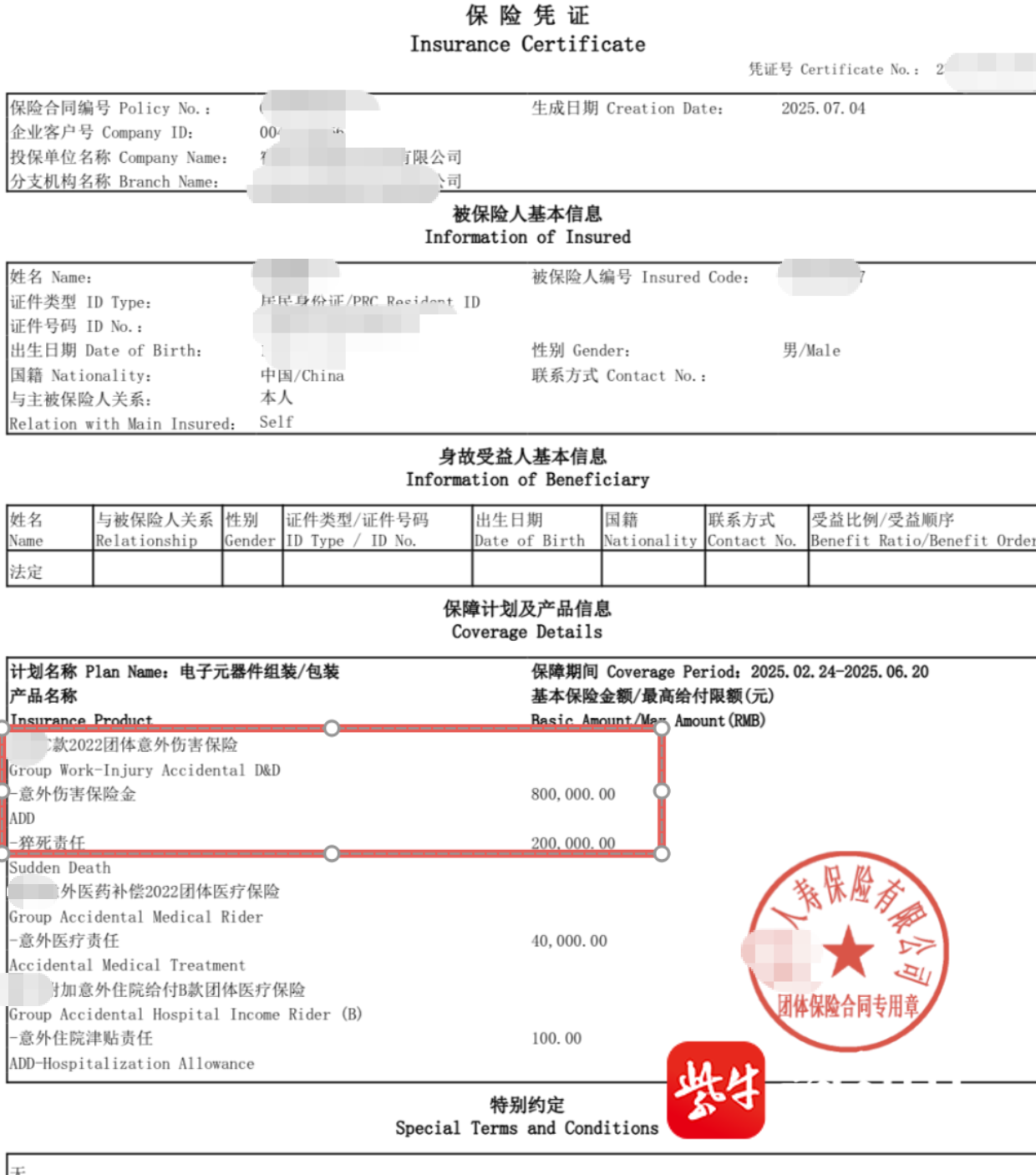 小张称,签完协议后,他便回老家休养,半年后身体已经恢复得差不多了。公司联系了小张让他去做劳动能力鉴定,费用由公司出。在鉴定机构,小张意外看到了他那份保单的名称。通过多方尝试,他终于在保险公司的系统里查到了他那份保单——这并非老板口中所谓的“雇主责任险”,而是一份以小张为被保险人的团体意外伤害险,保额为80万元。“受益人是我,公司从始至终都在隐瞒,他们想偷偷领走这笔钱。”小张愤怒地表示。