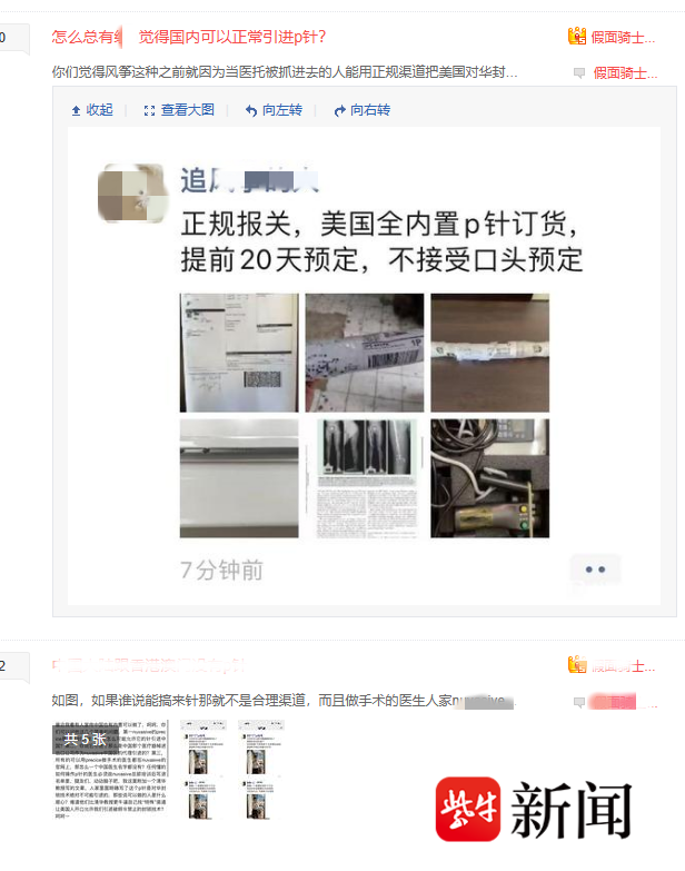 图为网络上有人发布“内置p针骨延长”的广告帖子