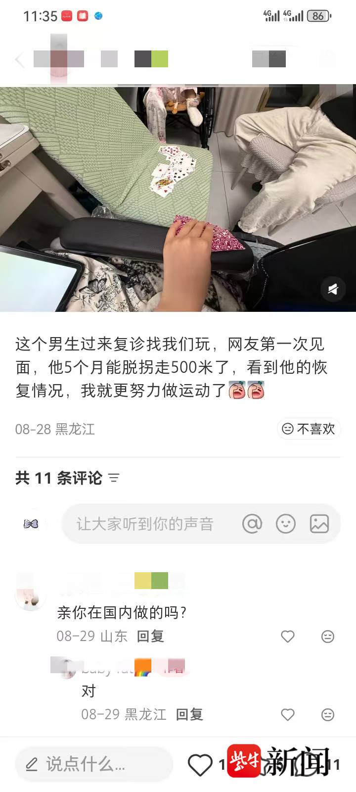 “平台上经常看到有人发布断骨增高的康复视频或者日记,文字及术后资料,有的是本人所发,有的则是被当作病例发布,主角双腿支架仍在,配有旁白称手术成功,恢复顺利,有广而告之之嫌。”一位网友告诉扬子晚报/紫牛新闻记者,这种通过发布案例的做法,给目前在国内禁止的该种手术做推广,画面观之刺目,甚至令人不适,但并未被平台禁止。