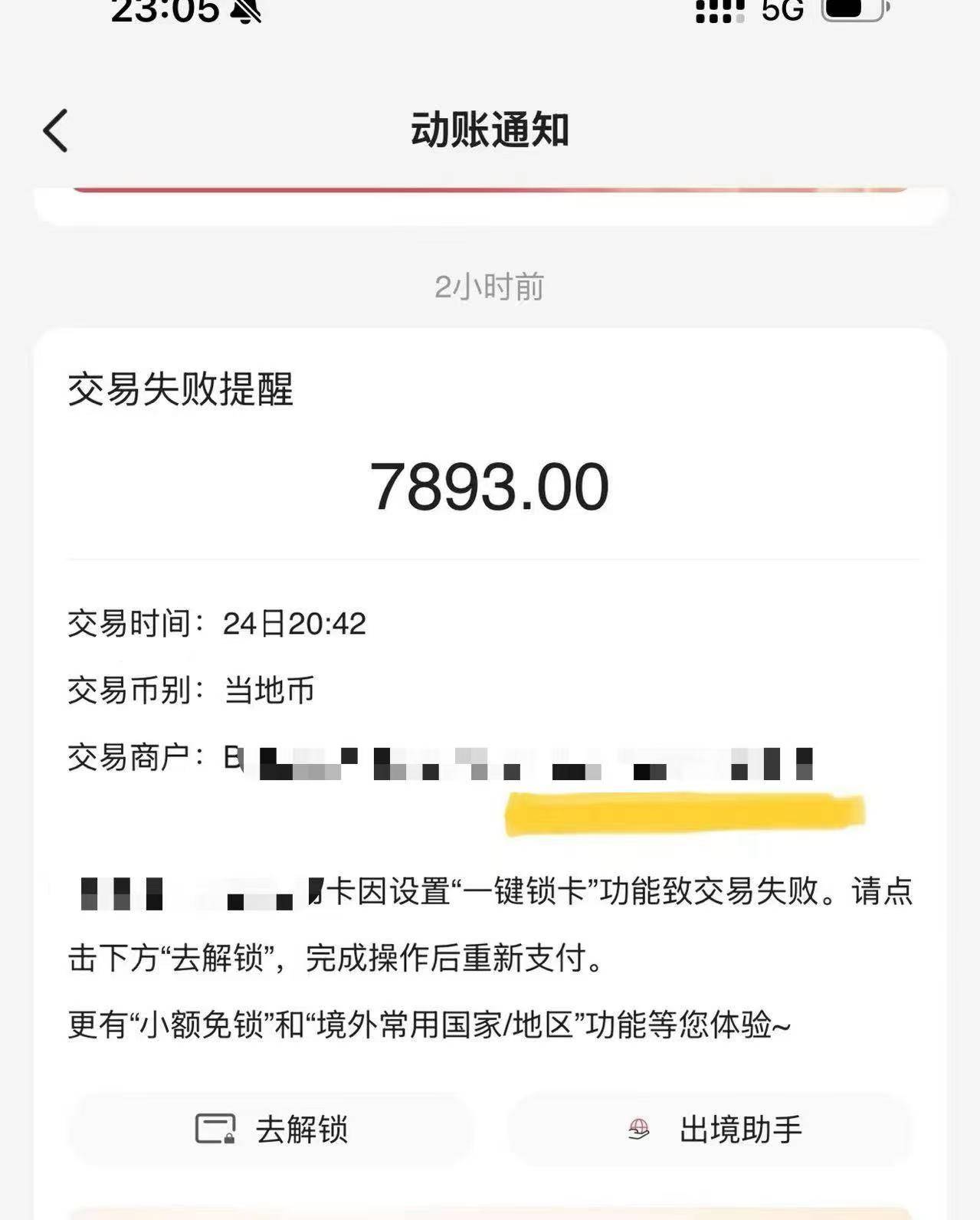 小文的信用卡显示交易失败提醒