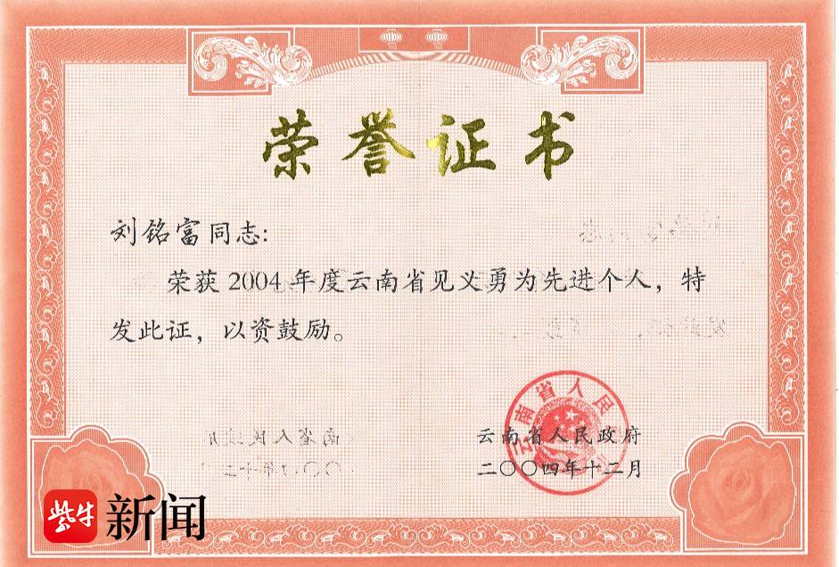 刘铭富的见义勇为表彰
