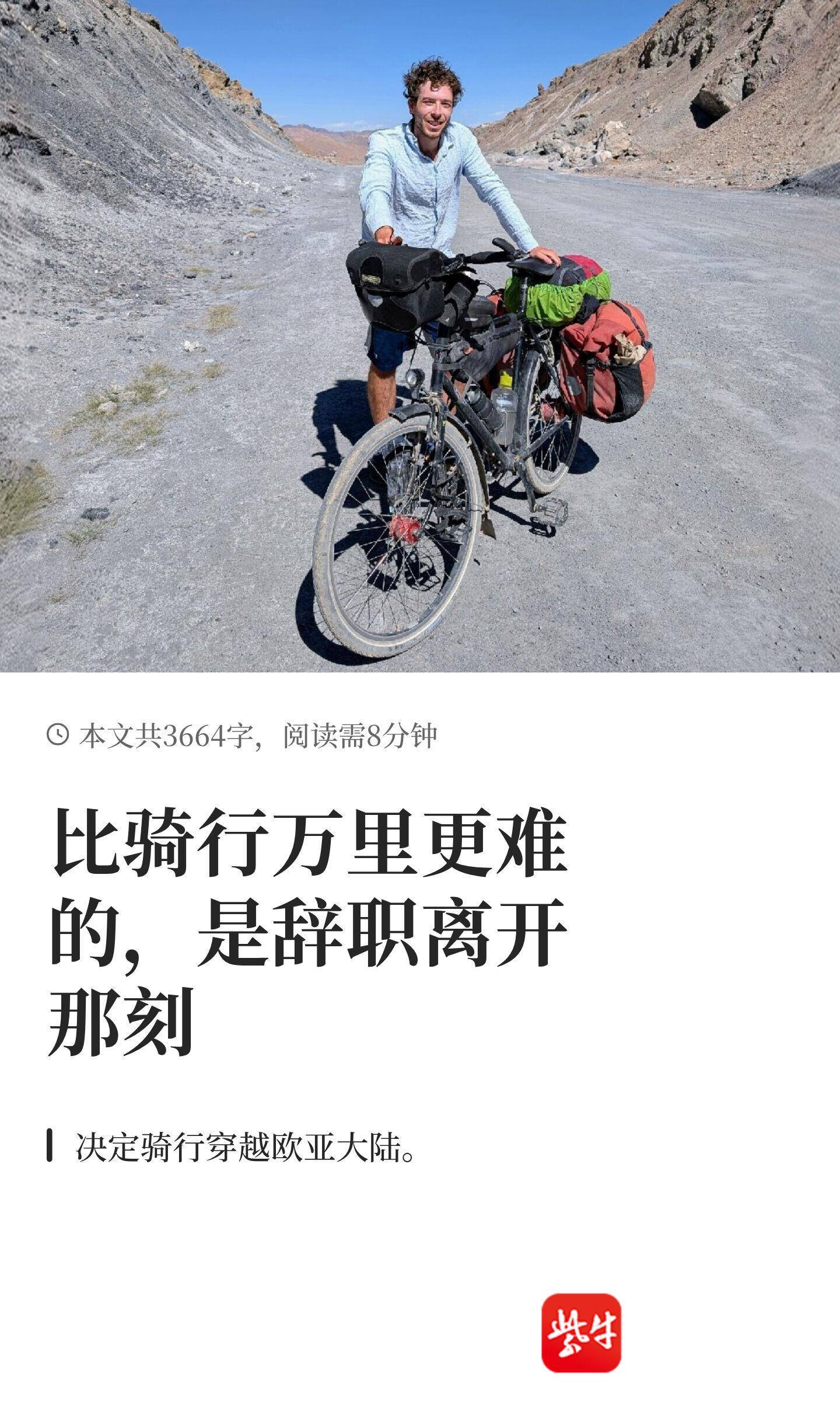 他在小红书征文比赛中所写的那篇文章中说过:“比骑行万里更难的,是辞职离开的那一刻”。他坦言,选择中国作为终点,部分原因是“想在中国多待一段时间,练习中文,同时也探索这个我此前未能深入了解的国家。”
