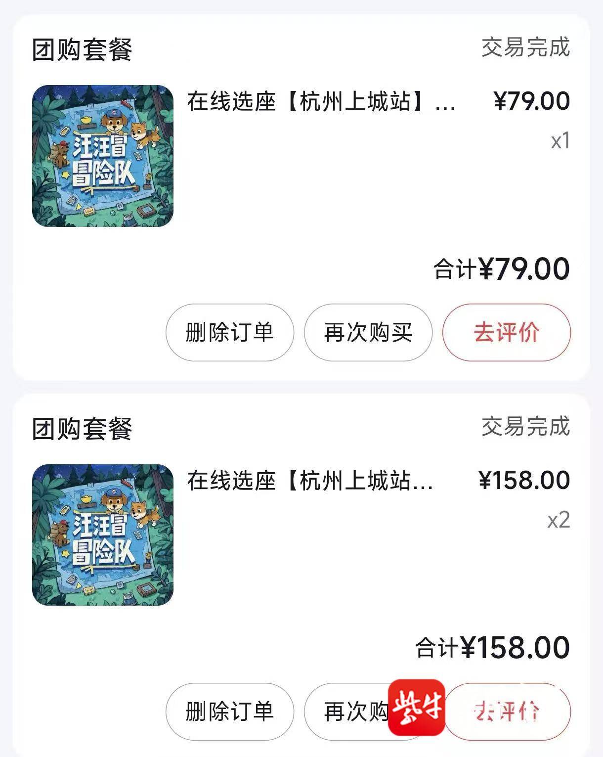 浙江杭州的李女士告诉记者,自己的孩子十分喜爱汪汪队IP,平日里也常看相关动画片。今年1月份,她在社交平台刷到了不少汪汪队相关舞台剧的推荐介绍,“宣传里看着挺好的,和在剧院的舞台上演出一样,有挺多的人偶表演唱跳。”李女士当即购买了三张名为《汪汪冒险队》的演出票,选择了79元/人一张的中档票价,演出地点位于杭州一影院内,购票后孩子也对这场演出充满期待。