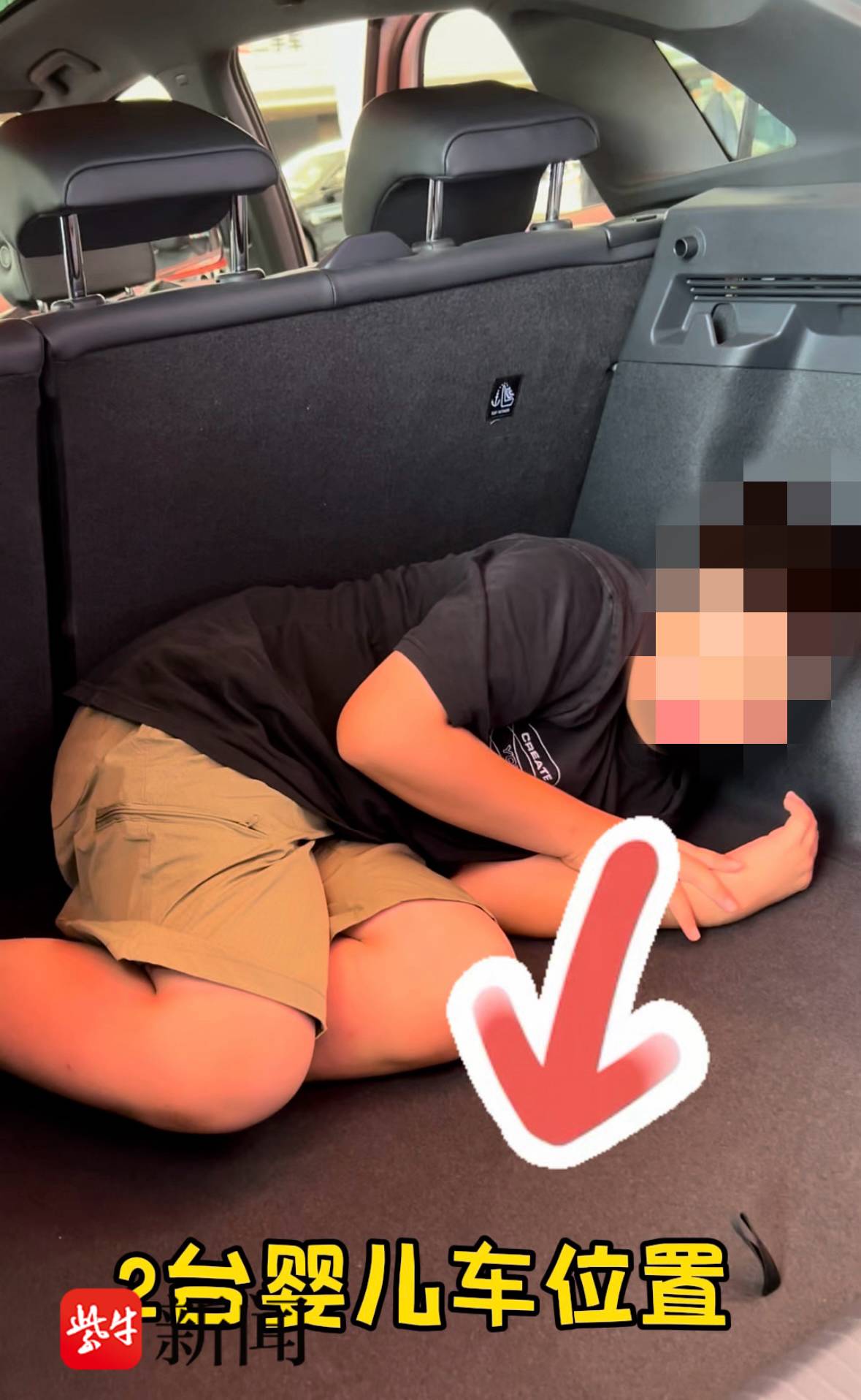 晨晨模拟当时在后备厢时的场景