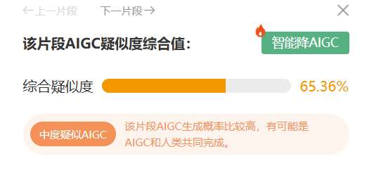 记者也试用了AIGC率检测,把AI大模型流行前写过的一篇报道提交到一个检测平台,检测出AIGC总体疑似度达18.12%,数段内容被标上橙色,判定AIGC生成疑似度在60%~70%。