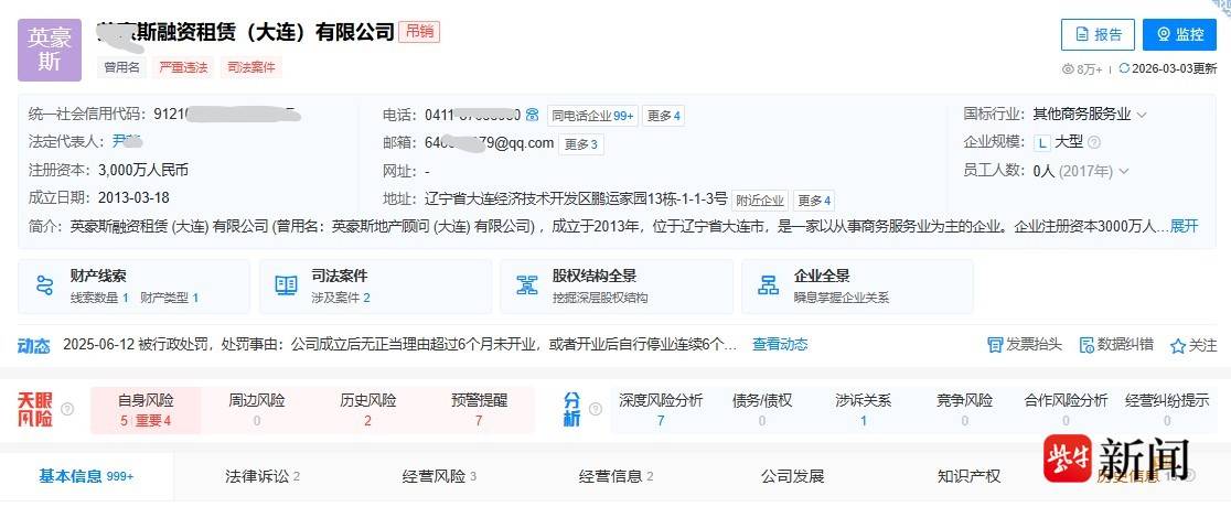 2024年1月31日,尹女士偶然查询发现,自己名下竟登记有两家公司,分别是注册在大连中山区的某牛商贸有限公司和注册在大连金普新区的某斯融资租赁公司。