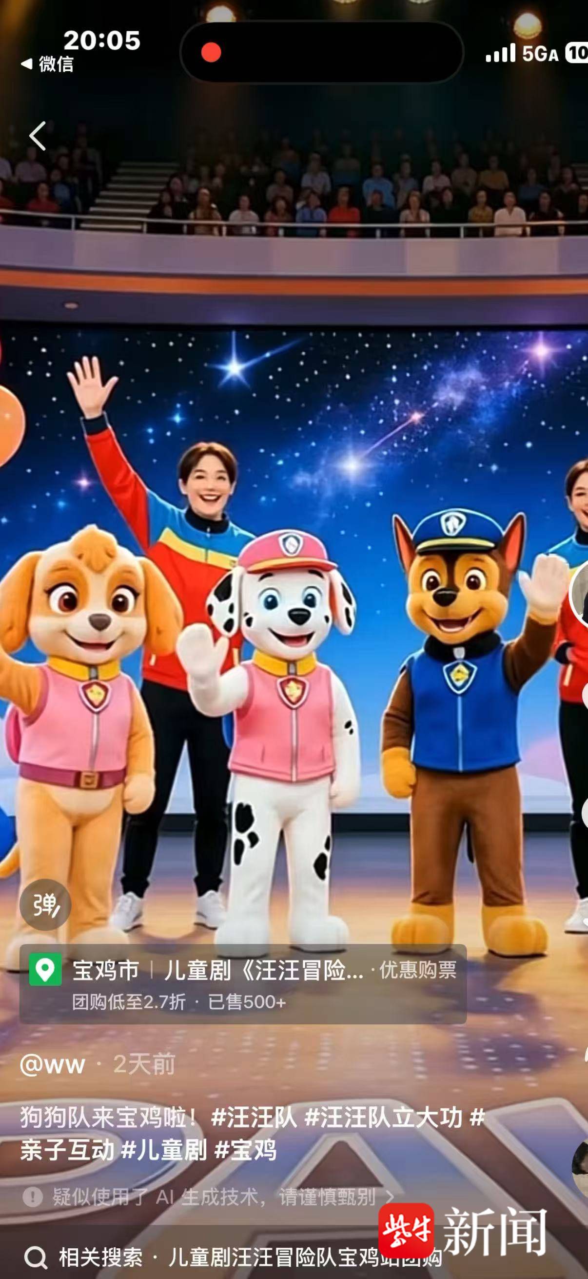 紫牛新闻记者搜索发现,一边是多地网友发帖批评“货不对板”“虚假宣传” ,晒出“踩坑”遭遇,发出“避雷”提醒。一边,平台上依旧可以刷到《汪汪冒险队》儿童舞台剧全国各地巡演的推广视频和团购链接。推广视频显示,演出计划已经排到5月。
