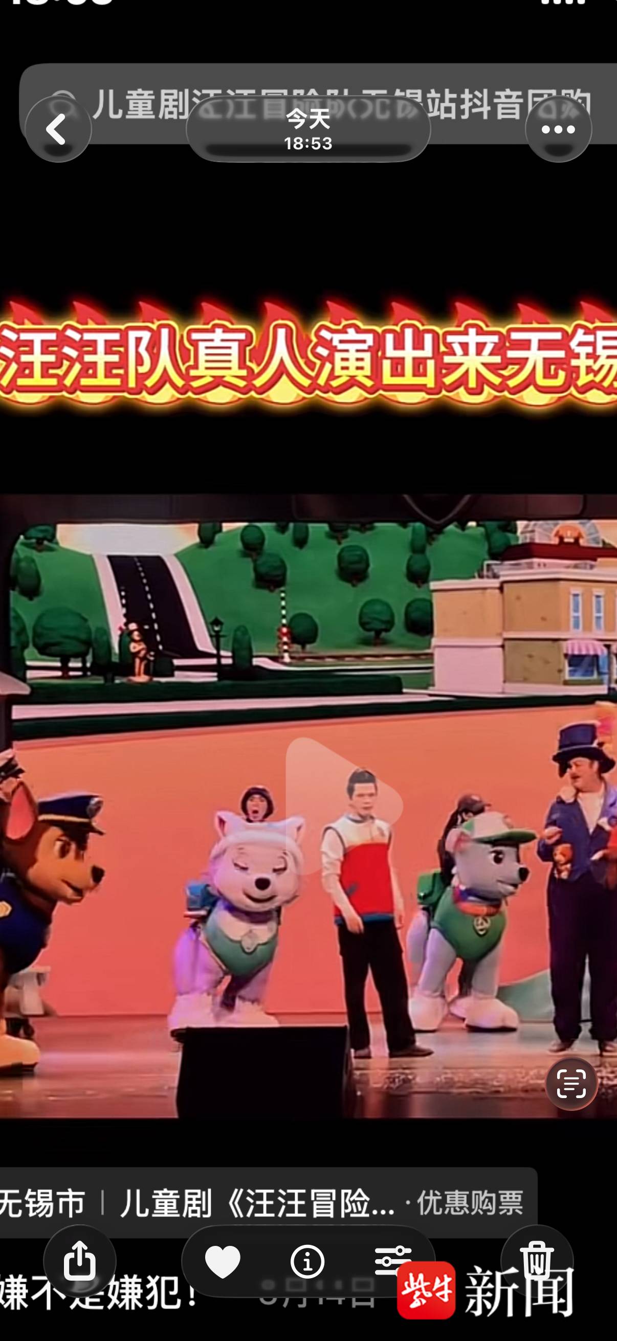 “汪汪队真人演出来无锡啦”,某达人账号近日发布4月12日无锡站演出的推广视频。短短几十秒,全部使用《汪汪队立大功》舞台剧演出的现场画面,并附购买链接,点进去发现售卖的是《汪汪冒险队》。 网友质疑:“用的正版视频,卖的演出却是盗版的。”发布者回复:小朋友看个热闹而已,并振振有词:“我不知道你说的正版和盗版对于小朋友来讲有什么区别。”