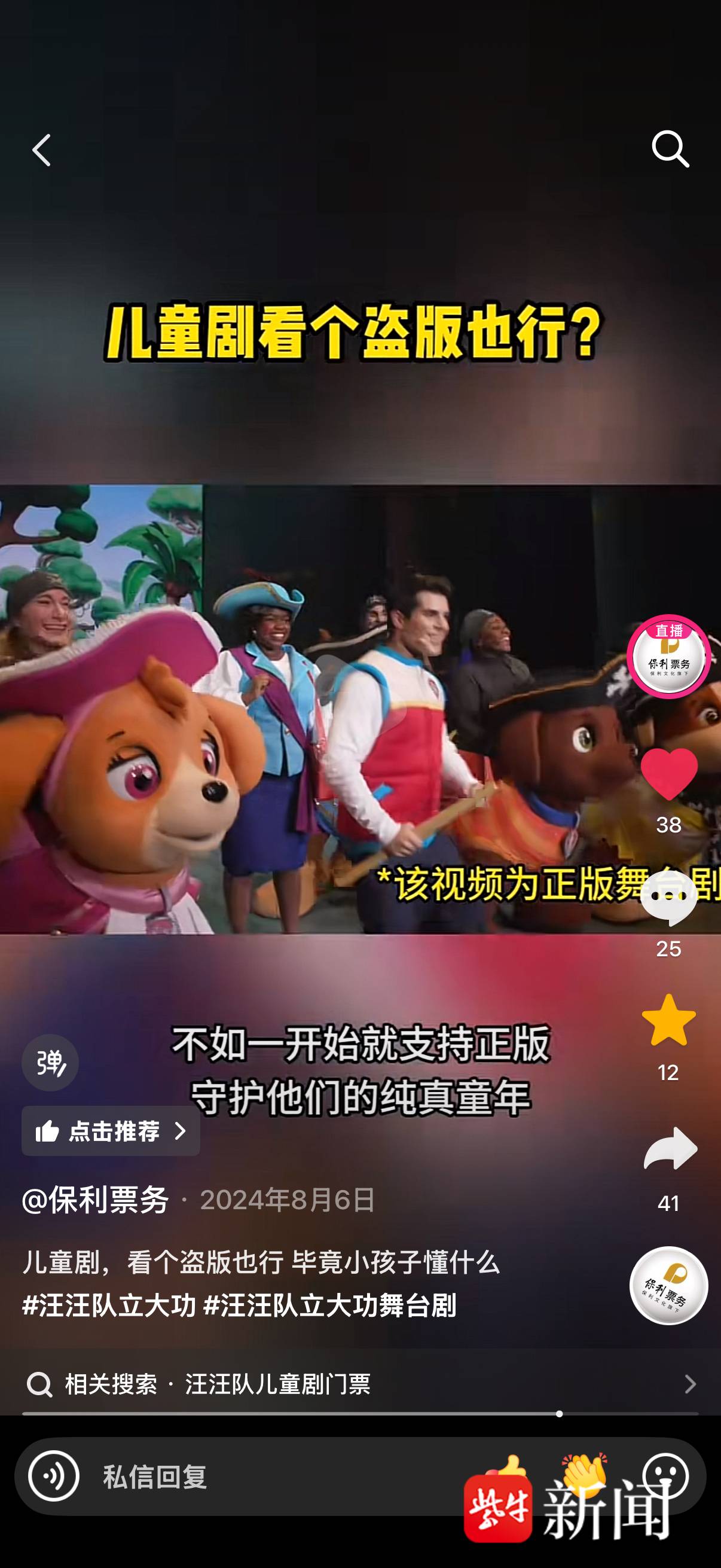 “看正版要认准正规院线、官方渠道。”杭州临平大剧院副总经理崔建彬介绍,保利剧院曾于2023年和2024年连续引入美国原版音乐舞台剧《汪汪队立大功》,并前往国内多个城市的大剧院巡演。“这部舞台剧高度还原了原版动画片。很受观众欢迎。”崔建彬向记者证实:2025年至今,保利院线没有再度引入舞台剧《汪汪队立大功》。