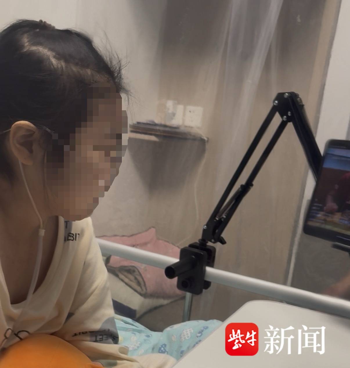 4月15日,在苏大附儿院血液科病房内,源源侧躺在病床上,眼睛一眨不眨地盯着平板电脑的屏幕。视频里,美食博主正在大快朵颐,源源看得津津有味。“我最喜欢看这类‘吃播’了。”她对扬子晚报/紫牛新闻记者说,“看着看着,就好像自己也吃到了一样,饭菜都变香了。”因为病情需要忌口,“吃货”源源就喜欢通过这种方式来解馋。