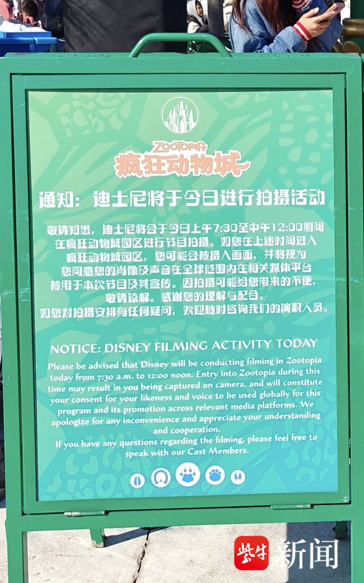 为了解相关情况,扬子晚报/紫牛新闻记者以消费者身份致电上海迪士尼度假区官方。工作人员回应称,当前没有疯狂动物城园区拍摄的信息,具体安排需以园区现场实际情况为准。同时,记者进一步提出疑问:若进入乐园后,发现现场部分园区确有类似宣传拍摄的提示,而游客介意授权肖像及声音,该如何处理?对此,工作人员未作出正面回应,仅表示:“您可以看现场这边是否有(通知),如果没有的话那更好。建议您如果要入园的话,是可以考虑正常入园的,可以错峰先去游玩其他项目。”